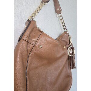 MICHAEL KORS MEGAN BROWN PEBBLED LEATHER TASSEL CROSSBODY OR SHOULDER BAG