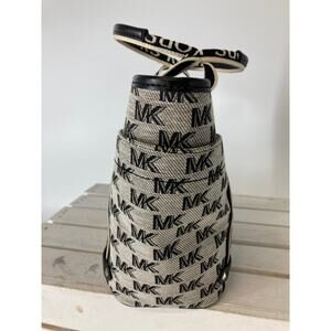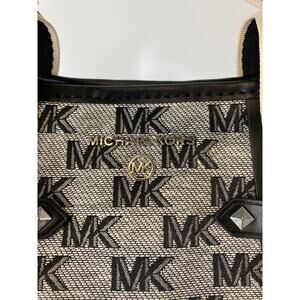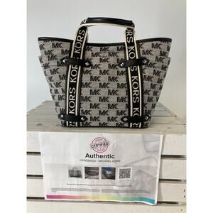 MICHAEL KORS, MEIDUM GRAY, BLACK SIGNATURE CANVAS HANDBAG