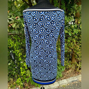 MICHAEL KORS MERCEER LONG SLEEVE BORDER PRINT SLINKY JERSEY SHIFT DRESS PETITE M