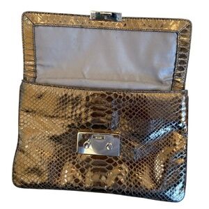 Michael Kors Metallic Bronze Python Embossed Leather Clutch Shoulder Bag