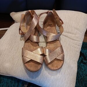 MICHAEL KORS MICHAEL Platform Strappy Ankle Sandals Leather Rose Gold Size 7