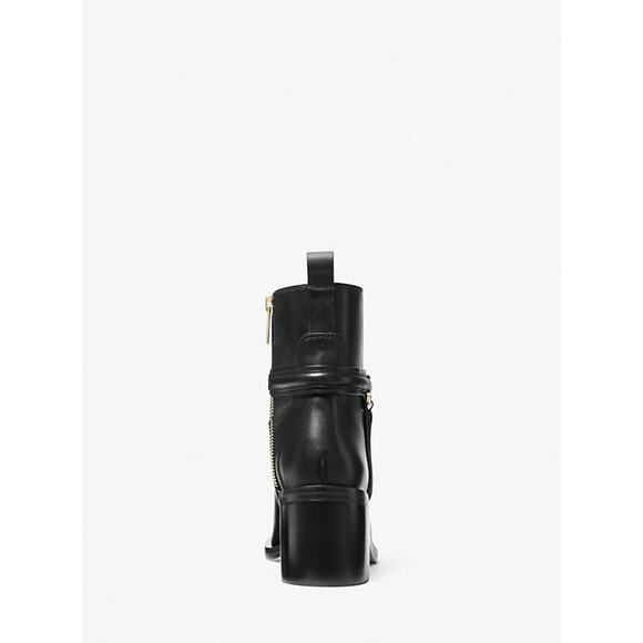 MICHAEL KORS MINDY BLOCK HEEL BOOT BLACK BOMBE 100% LEATHER 6.5M $295 MSRP