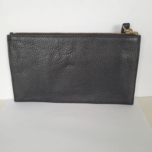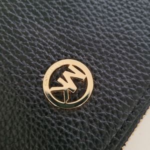MICHAEL KORS MK Black Pebble Leather Zip Around Wallet Wristlet Medium Luggage
