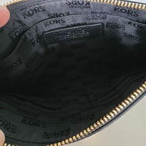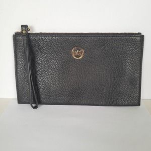 MICHAEL KORS MK Black Pebble Leather Zip Around Wallet Wristlet Medium Logo