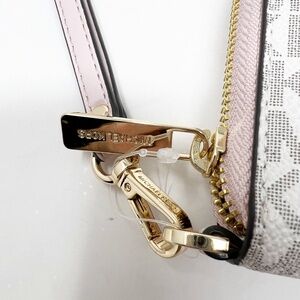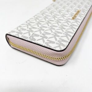 MICHAEL KORS MK Large Logo Continental Wallet Wristlet Pink Vanilla White Gold