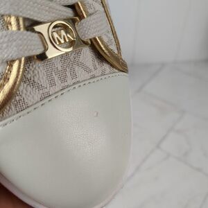 MICHAEL KORS MK Signature Kristy Espadrille Flat Sneakers Gold & White