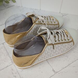 MICHAEL KORS MK Signature Kristy Espadrille Flat Sneakers Gold Women's Size 11