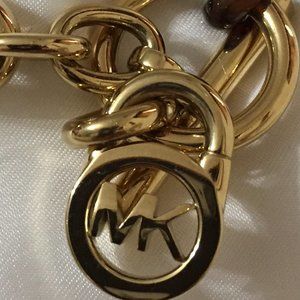 MICHAEL KORS MK TORTOISE SHELL LINK BRACELET. LIKE NEW. This gold plated metal and tortoise shell bracelet from Michael Kors boldly nods to classic style, accented by modern hardware. Gold tone plate/brass/acetate. Ring and toggle closure. 8.5"L.