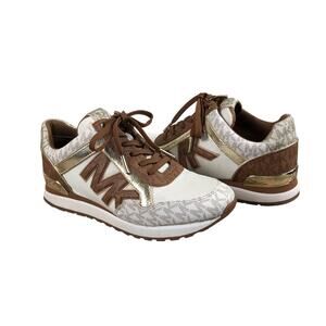 MICHAEL KORS Maddy Two-Tone Logo Mesh Sneakers Sz 9 Signature Stylish Streetwear