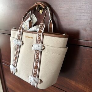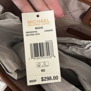 MICHAEL KORS Maeve Small Canvas Open Tote Luggage Leather NWT $298
