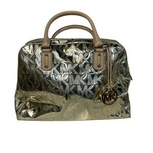 MICHAEL KORS Mason Medium Logo Embossed Metallic Gold Leather Satchel