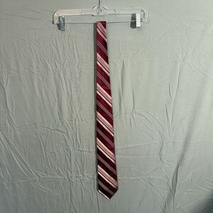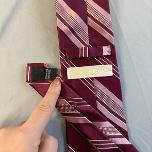 MICHAEL KORS Mens Burgundy Maroon & Pink Striped Detailed Tie 100% Silk