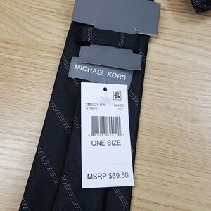 MICHAEL KORS Mens Neck Tie Black Diagonal Stripe Classic Pointed Silk Blend
