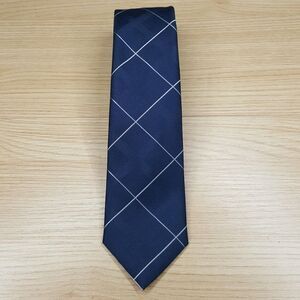MICHAEL KORS Mens Neck Tie Navy Grid Check Stripe Classic Pointed Silk Blend