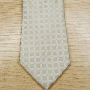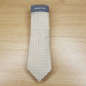 MICHAEL KORS Mens Neck Tie Tan Square Grid Geo Check Classic Pointed Silk Blend