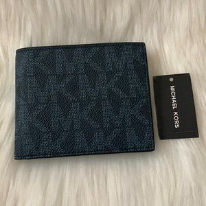 MICHAEL KORS Men's Signature Logo Slim Bill Fold Wallet in Admiral Blue