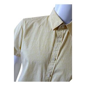 MICHAEL KORS Mens Size Medium Yellow White Short Sleeve Button Up Slim Fit Shirt