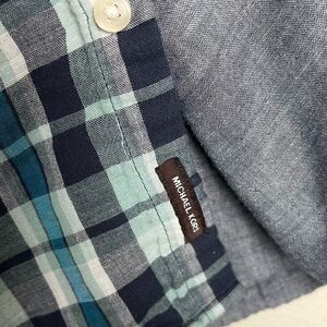 MICHAEL KORS Men's Size XL Blue/Geen Plaid Button Down Long Sleeve