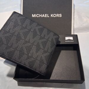 MICHAEL KORS Men's Wallet SIGNATURE MK Logo BLACK LEATHER BRAND-NEW w/tags/box