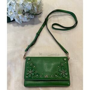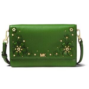 Floral Embellished Pebbled Leather Convertible Crossbody Bag Michael Kors
