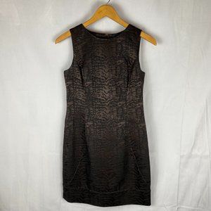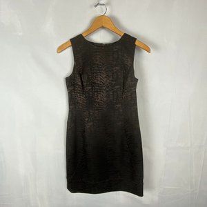 MICHAEL KORS Metallic Black Brown Zebra Print Sheath Dress