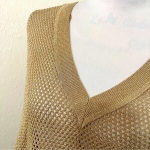MICHAEL KORS Metallic Gold Knit Kaftan Poncho Med Business Casual EUC Designer