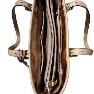Interior: Spacious main compartment with signature MK lining, multiple pockets, including a zip pocket