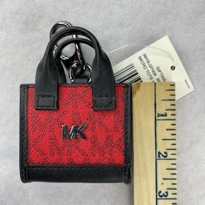 MICHAEL KORS Micro Signature Logo Earbud Case AirPod Case Red Womens Purse Fob