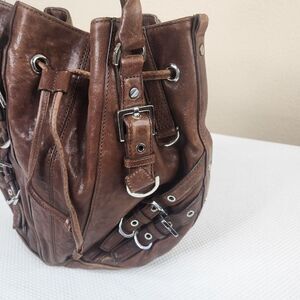 MICHAEL KORS Milo Distressed Leather Large Bucket Handbag Purse Tote