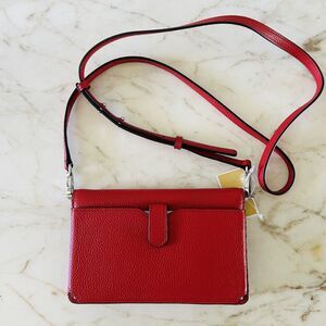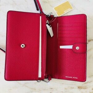 MICHAEL KORS Dark Raspberry Red Leather Phone Crossbody Bag