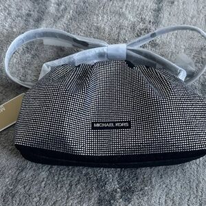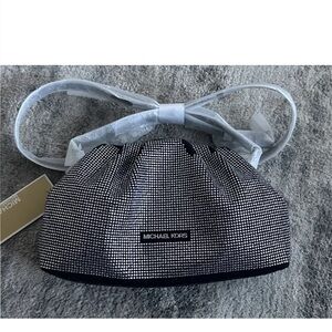 MICHAEL KORS NOLA CHAIN CLUTCH CROSSBODY SHOULDER BLACK DENIM CRYSTAL BAG