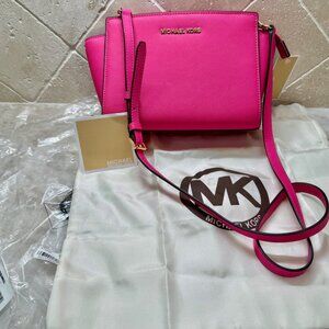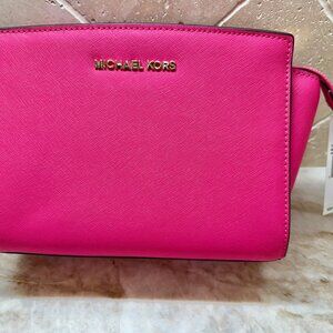 MICHAEL KORS NWT Med. Messenger Crossbody Bag, Selma, Neon Pink Saffiano Leather