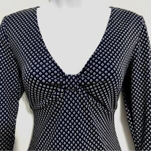MICHAEL KORS Navy Patterned ¾ Sleeve Knee Length Dress Size 8 Medium