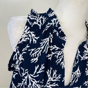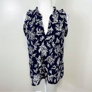MICHAEL KORS Navy & White Reef V-Neck Ruffled Sleeveless Blouse - MEDIUM