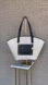 MICHAEL KORS Neutral Cream & Black Large Canvas Leather Kimber Logo Tote Bag