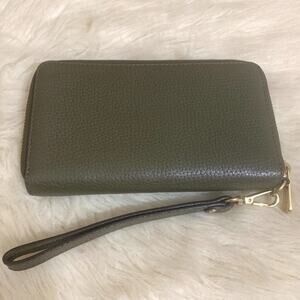 MICHAEL KORS Olive Green Pebbled Leather Zip Around 7" Wristlet Phone Wallet