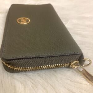 MICHAEL KORS medium zip around clutch phone wristlet/wallet......made frop olive green pebbled leather, with gold hardware.