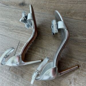 MICHAEL KORS PARIS SANDAL SILVER ANKLE STRAP WOMEN'S SHOES BOW