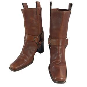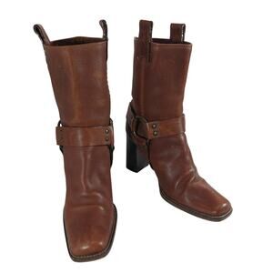MICHAEL KORS! PECAN BROWN GENUINE LEATHER HARNESS SIDE, CHUNKY BOOTS! SZ 6M