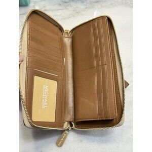 This wallet is perfect for women who want a compact and stylish accessory that can hold all their essentials. With its small size, it is easy to carry around and keep your hands free. The Michael Kors wallet is a must-have for any fashion-forward woman who wants to make a statement with her accessories.