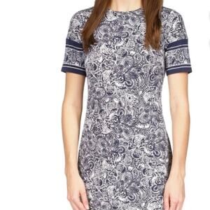 MICHAEL KORS Paisley Print Border Trim Blue Dress Size Women's Size S NWT