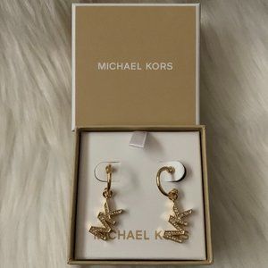 MICHAEL KORS PAVE DROP LOGO HUGGIES EARRING
