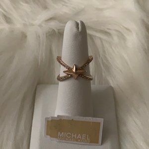 MICHAEL KORS Pave Starburst Ring Rose Gold Sz 8