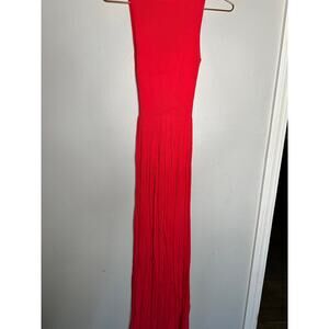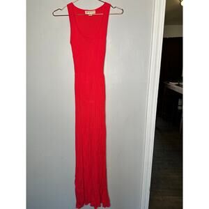 MICHAEL KORS Pink Red Ribbed Knit Stretch Maxi Dress Size XS