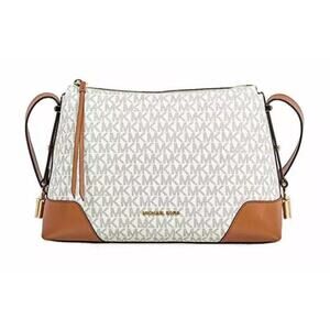 MICHAEL KORS Pocketbook Crosby Medium Signature Logo Print Messenger Bag Cream