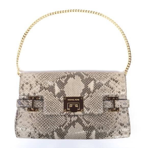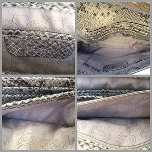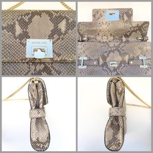 Authentic Preowned MICHAEL KORS Python Embossed Shoulder Bag. This bag is in good condition. No trades. W11.75"xH7"xD1.75". P2213ha