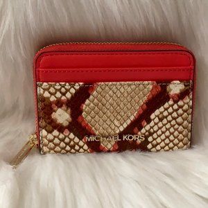 MICHAEL KORS PYTHON EMBOSSED CARD CASE IN CORAL