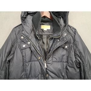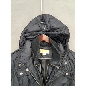 MICHAEL KORS QUILTED PUFFER LIGHTWEIGHT BLACK HOODED DOWN COAT SIZE L