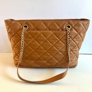 MICHAEL KORS Quilted Leather Tote, Acorn Brown with Gold Accents