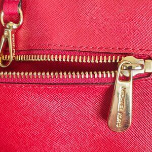 Gold-tone exterior hardware; interior back zip pocket & 2 front slip pockets